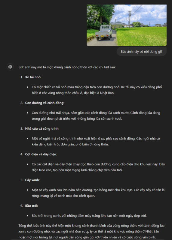 Không chỉ có khả năng tạo hình ảnh, ChatGPT còn có thể phân tích ngược lại các hình ảnh bạn cung cấp, từ đó đưa ra thông tin, nhận định, hoặc trích xuất nội dung trong ảnh. Đây là bước tiến quan trọng giúp ChatGPT không còn chỉ là AI “đọc-chữ-trả-lời”, mà đã thực sự hiểu được ngữ cảnh thị giác.