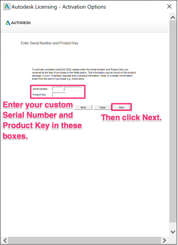 Serial Number và Product Key trong AutoCAD
