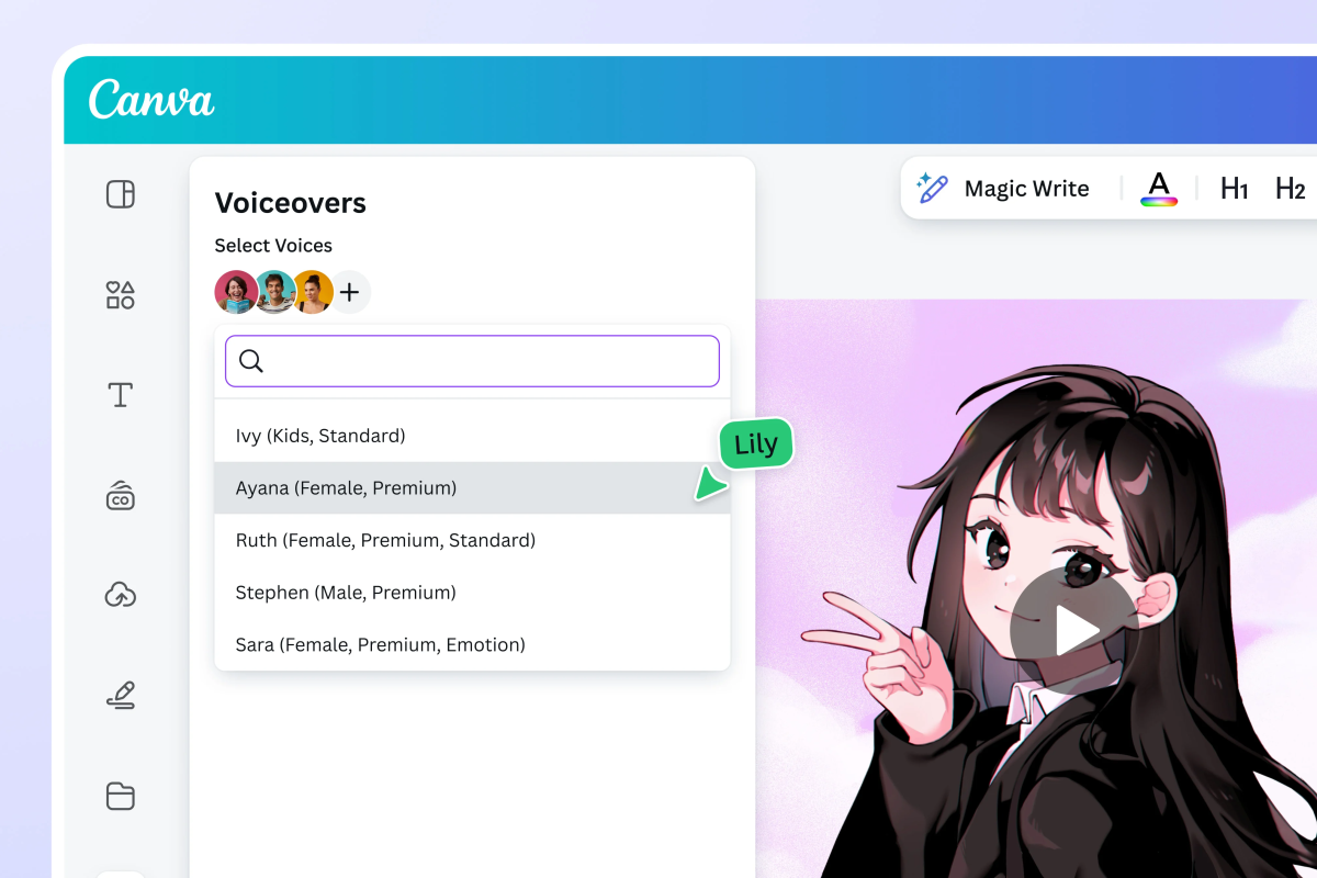 • Canva Pro: Một số tính năng giọng đọc nâng cao chỉ có sẵn trên bản Pro.