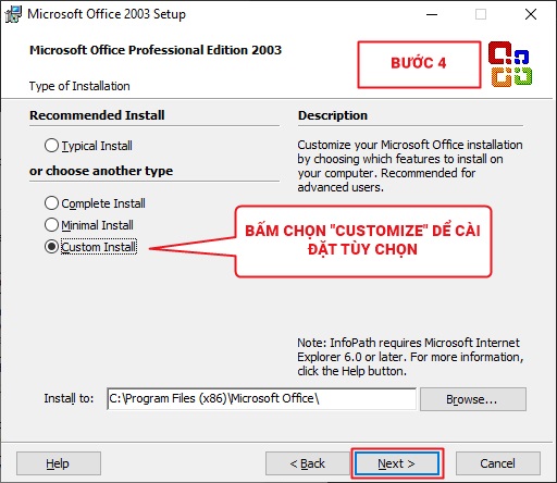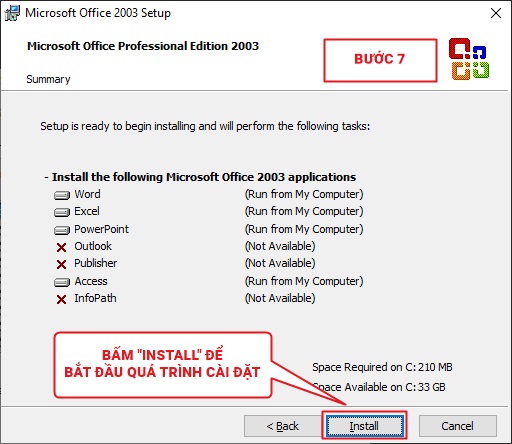 Bước 7: Bấm Install để bắt đầu quá trình cài đặt Office 2003