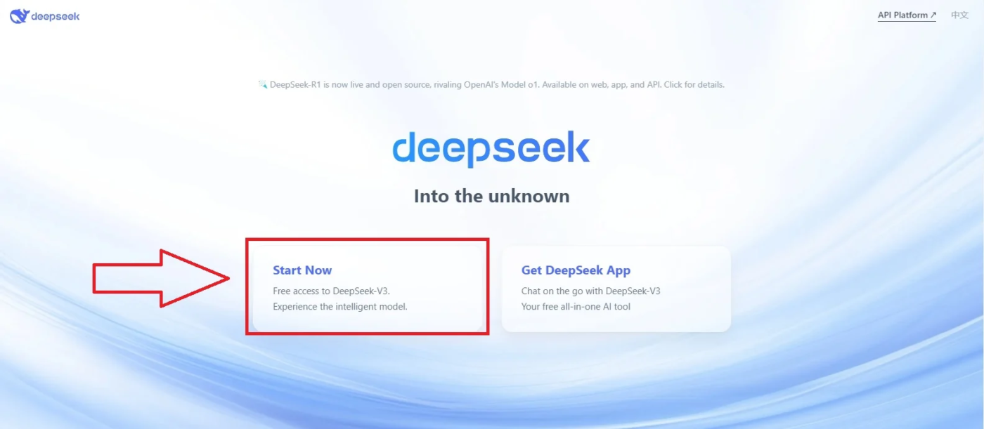 1️⃣ Truy cập trang web chính thức của DeepSeek và điều hướng đến phần tải xuống.
