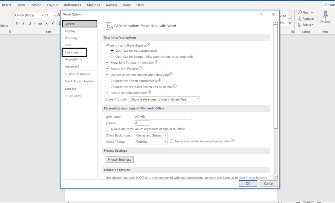 2. Thay Đổi Ngôn Ngữ Trong Ứng Dụng Office (Word, Excel, PowerPoint)