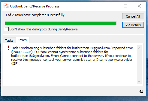 Dưới đây là một số lỗi thường gặp khi cài đặt và thêm tài khoản Gmail vào Outlook 2016 cùng với cách khắc phục: