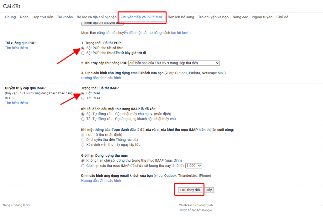 • Trong phần IMAP Access, chọn Bật IMAP.