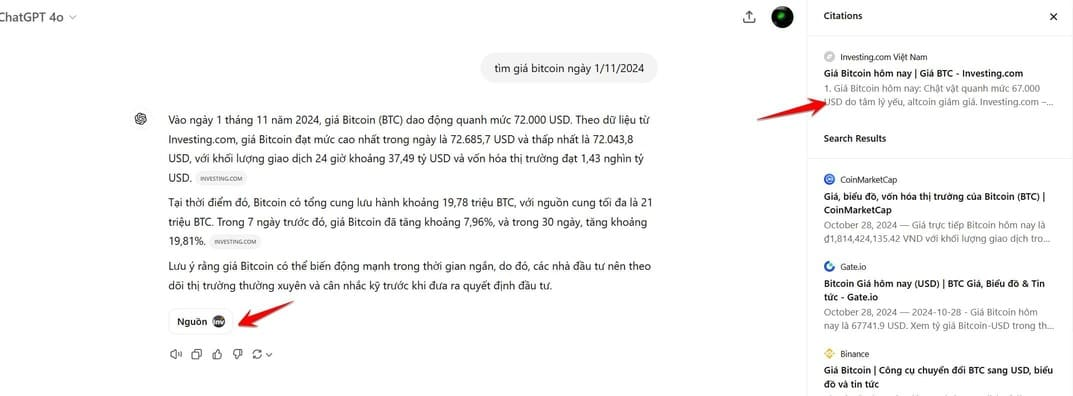 • Theo dõi nguồn thông tin: ChatGPT cung cấp kèm các nguồn tham khảo đáng tin cậy như Wikipedia hoặc các trang tin lớn.