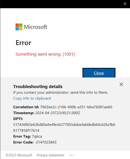 Sai mật khẩu hoặc dịch vụ đăng nhập của Microsoft gặp sự cố.