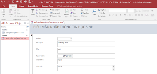 Để nhập dữ liệu vào trong phần mềm Access người dùng cần tham khảo các bước thao tác như sau: