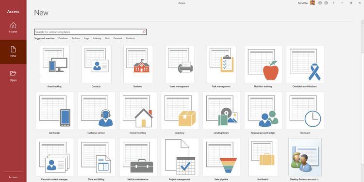 • Bước 1: Mở ứng dụng Access trên thiết bị của người dùng và click chọn File > sau đó click chọn vào New.Tại đây, người dùng có thể lựa chọn một bảng dữ liệu tùy chỉnh.