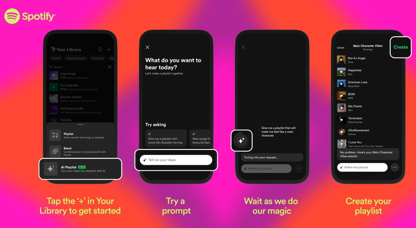 • Spotify sử dụng thuật toán để gợi ý các bài hát, nghệ sĩ và Playlist dựa trên sở thích nghe nhạc của bạn. Tuy nhiên, việc tự tạo Playlist giúp bạn thể hiện cá tính âm nhạc riêng biệt và khám phá những bài hát phù hợp với gu thẩm mỹ của bản thân.