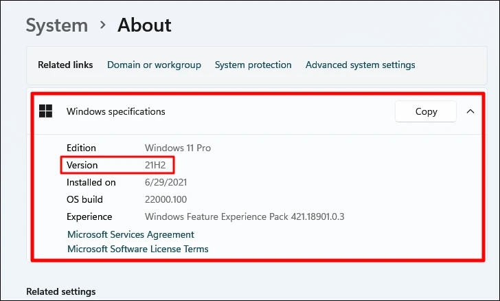 • Kiểm tra phiên bản Windows: Vào Settings > System > About để kiểm tra phiên bản Windows đang sử dụng.