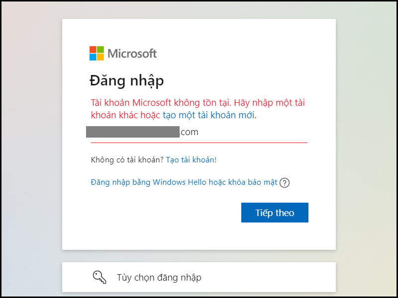 • Nhầm lẫn giữa tài khoản Microsoft cá nhân và tài khoản doanh nghiệp hoặc trường học.