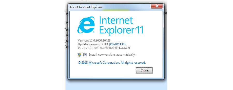 • Kiểm tra phiên bản IE 11 bằng cách nhấn vào biểu tượng “Gear” (Cài đặt) ở góc trên bên phải, chọn “About Internet Explorer” để xem thông tin phiên bản.