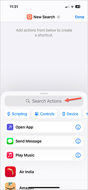 Bước 2: Tạo Phím Tắt ChatGPT Search Mới Trong Ứng Dụng Shortcuts