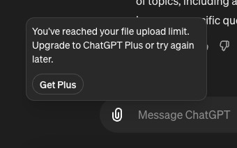 Người dùng miễn phí không được ưu tiên truy cập nhiều tính năng nâng cao, bao gồm cả tính năng xử lý hình ảnh. Việc nâng cấp lên ChatGPT Plus với mức phí 20 USD/tháng không chỉ giúp bạn tải ảnh mà còn truy cập vào GPT-4 và các plugin mạnh mẽ khác như DALL·E, Browsing, Code Interpreter,…