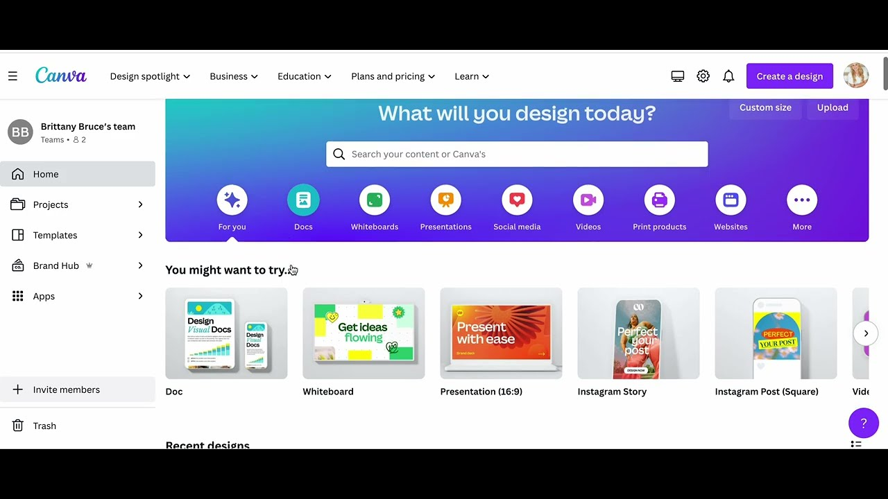 Sau khi đăng nhập vào Canva, bạn vào menu bên trái và chọn “Brand” hoặc “Brand Hub”. Đây là nơi quản lý toàn bộ Brand Kit của bạn.