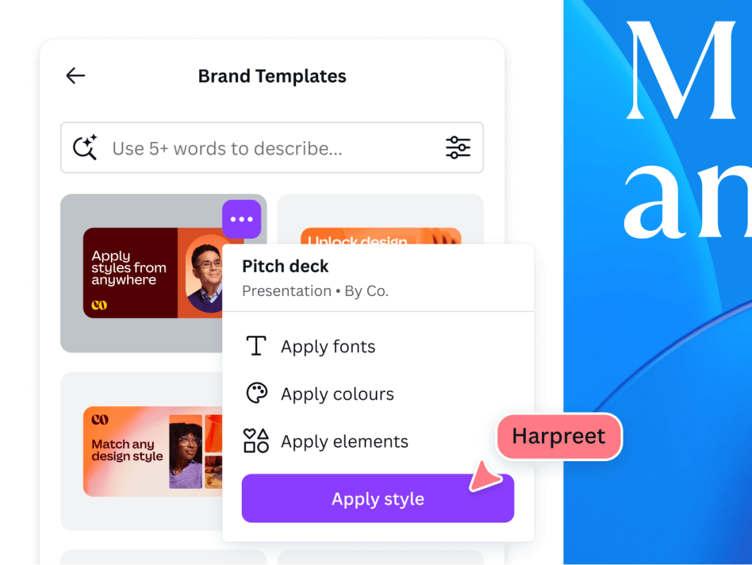 Bạn vừa thay đổi logo công ty? Không cần sửa thủ công từng file nữa. Với Magic Replace, Canva AI sẽ tự động thay thế logo mới trên toàn bộ thiết kế của tổ chức bạn chỉ với một lần click.