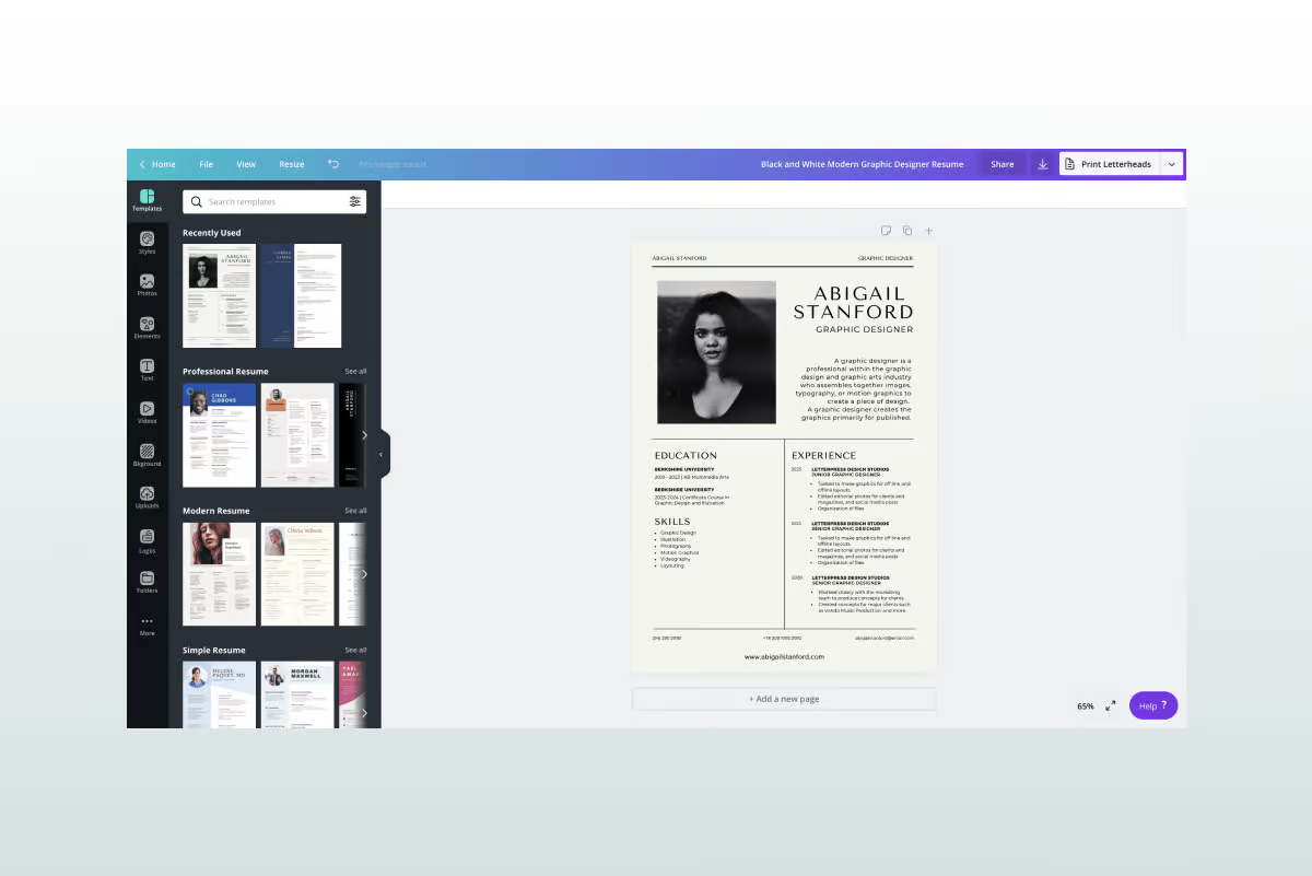 2. Những tính năng nổi bật của Canva AI Resume Builder
