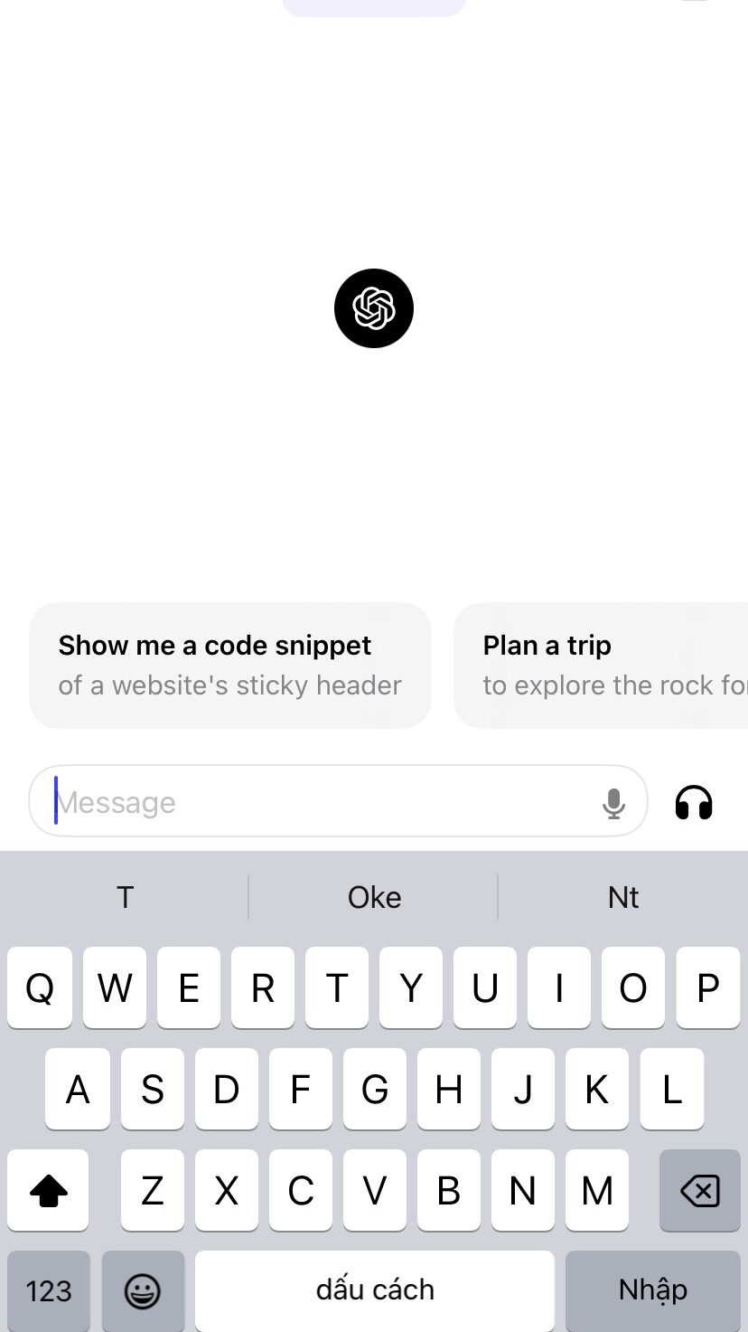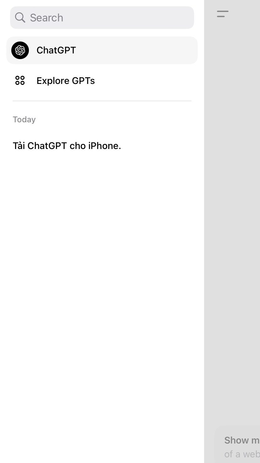 Bước 1: Mở ứng dụng ChatGPT trên điện thoại của bạn, giao diện ban đầu sẽ như hình dưới đây