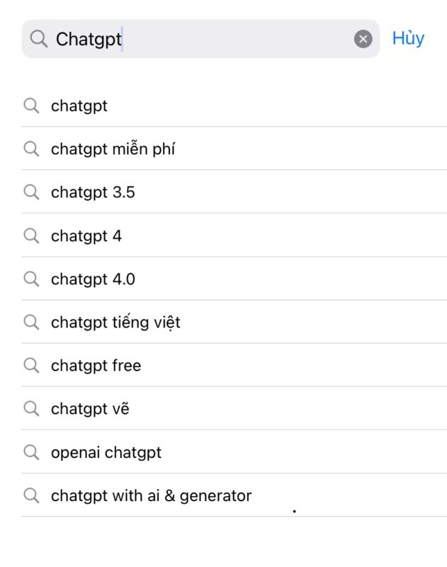 Bước 3: Chọn ứng dụng ChatGPT: Khi kết quả tìm kiếm xuất hiện, bạn sẽ thấy ứng dụng ChatGPT trong danh sách. Nhấn vào biểu tượng của ChatGPT trên màn hình để mở trang chi tiết.