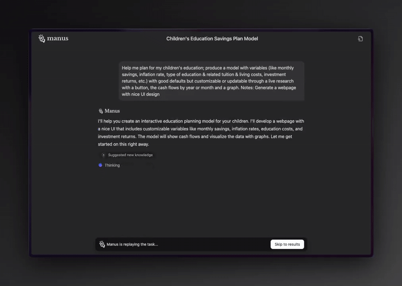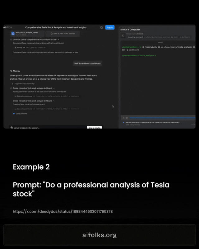 Một nhà đầu tư chỉ cần nhập yêu cầu, Manus sẽ tự động tổng hợp dữ liệu, phân tích xu hướng doanh thu, lợi nhuận, rủi ro, và đưa ra dự đoán chi tiết.