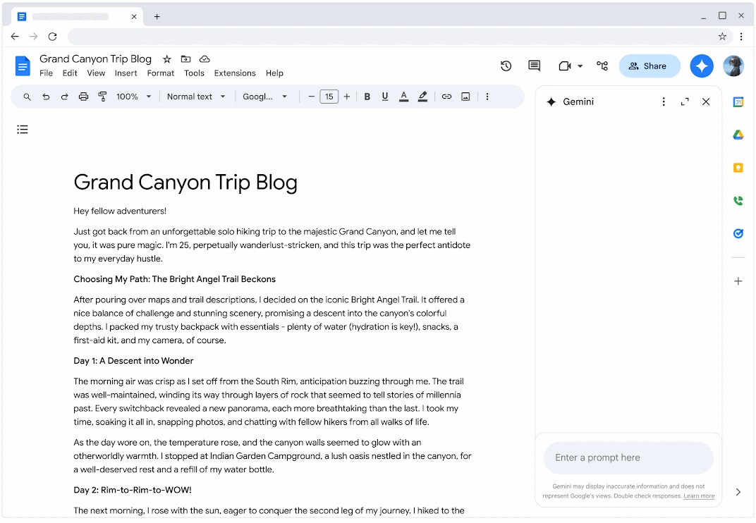 1. Cài đặt: Bạn có thể truy cập vào trang của Google Docs hoặc Microsoft Word để kiểm tra tính năng tích hợp AI. Nếu bạn sử dụng Google Docs, Gemini AI có thể đã được tích hợp sẵn. Nếu chưa, hãy tìm kiếm trong phần add-on để kích hoạt.